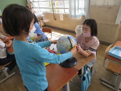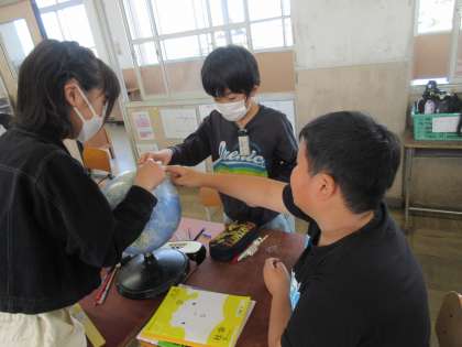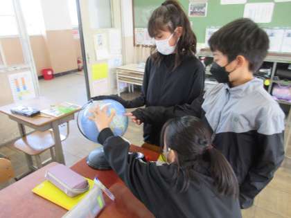 地球儀を使って国見つけゲームをしました。素早く見つけていました。