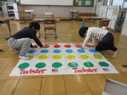 前回とはルールを少し変更して、英語でツイスターゲームをしました。