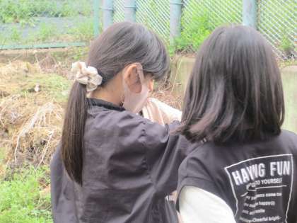 理科の学習では、気温のはかり方を確認しました。風通しのよいところ、地面から1.2m〜1.5mの高さ、温度計に直接日光が当たらないようにしました。