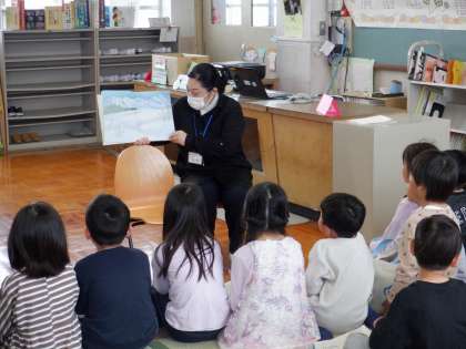 図書館司書の先生に、春を感じられる本の読み聞かせをしてもらいました。たくさんの本に囲まれて読み聞かせを聞くと、自分でも本をどんどん読みたくなりますね。