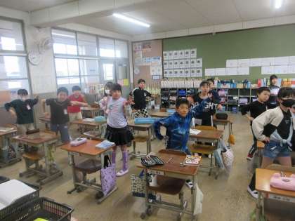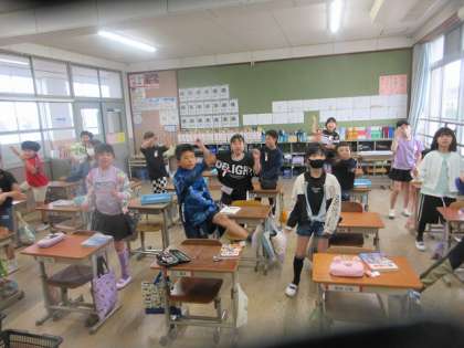今日から「健康チャレンジ」が始まりました。音楽に合わせてダンスを踊りました。子どもたちは、見本の動画を見ながら楽しくダンスをしました。