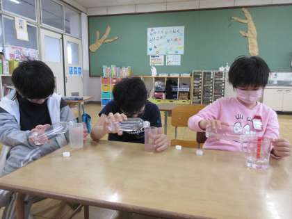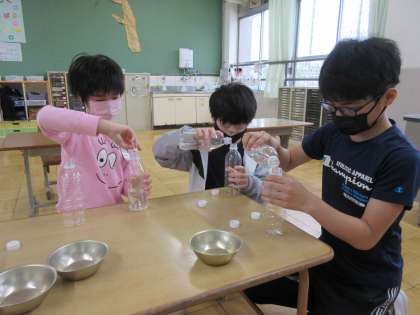 水平な台の上に置くことや、真横から目盛りを読むことなどを学習しました。