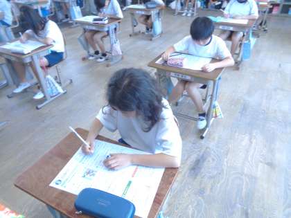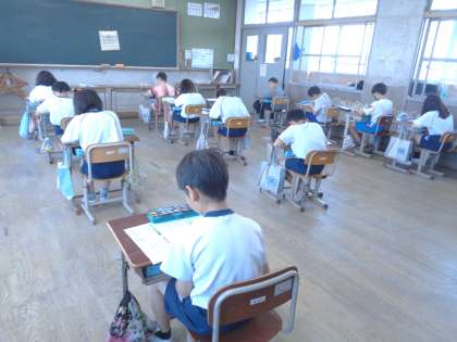 4年生になって初めてのテストです。みんな真剣に取り組んでいます。