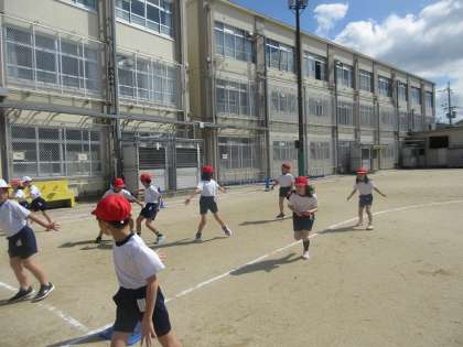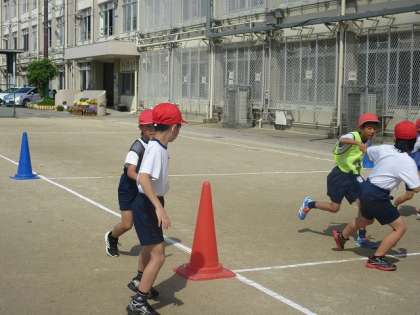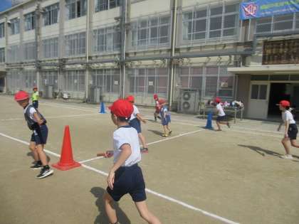 体育のリレーでは、運動場で行いました。天気にも恵まれ、おもいっきり走ることができました。1回目より、バトンを渡せることを喜んでいる子どもたちがいました。