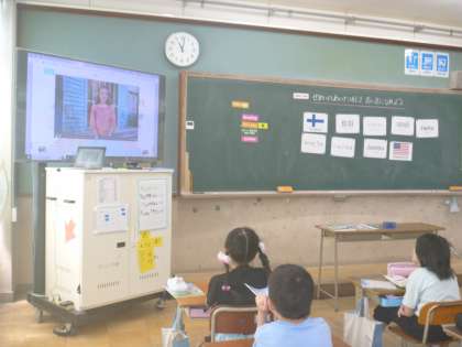 世界の挨拶を聴くと、「すごい!」「なんて言っているのかな?」と興味津々でした!みんなで交流しているお顔もすてきです。やっぱり友達と交流すると楽しいですね!