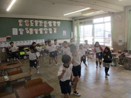 毎週火曜日と木曜日は、「健康チャレンジ」の日です。朝から元気に踊っています!!