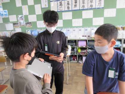 同じ場所で違う時間に撮影した空の様子の写真を見比べ、気が付いたことを交流しました。