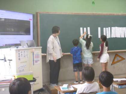 みんなで聴いた後、歌詞を並び替えながら確認していきました。聞き取れた言葉はあったでしょうか。