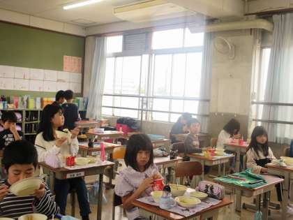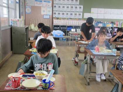 今日の給食では、「カラフルライスのぐ」を食べました。あまり出ることのない給食だったので、どきどきわくわくしながら食べている様子がありました。