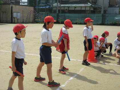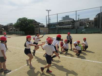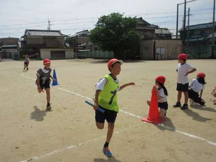 リレーでは、バトンパスや声かけがうまくなってきました。また、チームのために一生懸命走る姿がよかったです。前回よりもタイムが速くなっている人もいました。