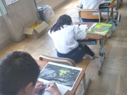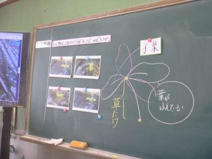 タブレットで観察をし、観察カードに書きました。新しく「子葉」「草たけ」という言葉を知りましたね!