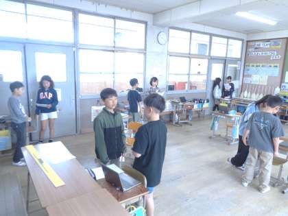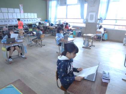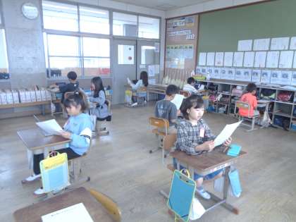 お話を聞いた後、自分のメモを確認して話をする練習をしています。GIGA端末に録音をして自分の話し方を振りかえることもできました。今日は、ペアの友だちにだけ話をしてアドバイスをしてもらい、良かったところも聞きました。明日は、みんなに話をしたいと思います。