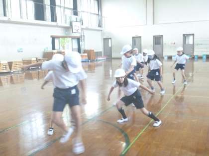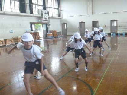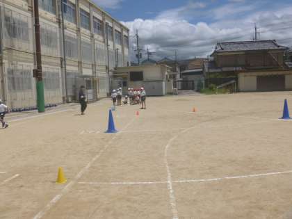 ソフトボール投げ・反復横跳び・立ち幅跳びです。昨年の記録を超えようと必死に頑張る姿がすてきでした。