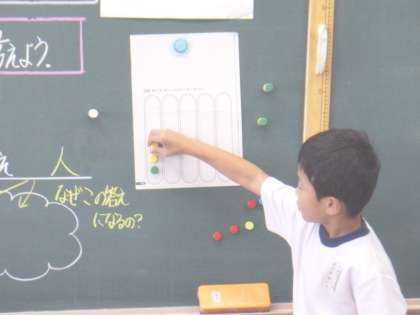どのようにして答えを求めたのかをみんなに説明していました。
