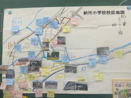 各場所の名前をふせんをはったり、写真をはりつけたりなどした白地図をみると・・・「いっぱいすぎて、みづらい」「わかりにくいな」いう声がありました。