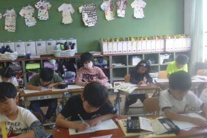 今日は・・・!1組と2組合同で社会の学習をしました。みんなで探検してきたことを振り返りながら、白地図にまとめていきました。