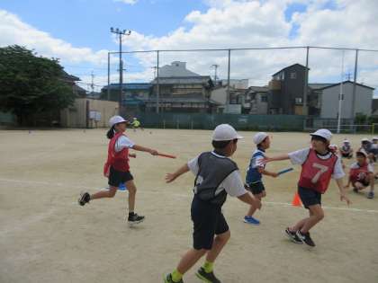4年生の最後のリレーでは、学年で行いました。たくさんの人数で行うことで、とても盛り上がりました。最後のリレーでもチームのためにがんばる子どもたちの姿がとてもかっこよかったです。