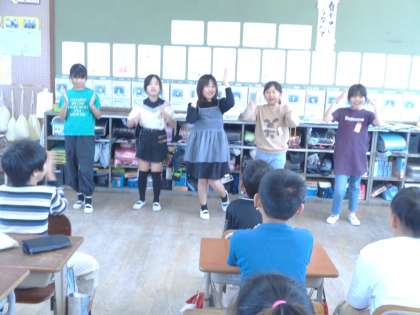ダンス係りの子どもたちが練習してきた成果を発表してくれました。笑顔でとても楽しんで踊る姿に、みんなも笑顔になりました。とても上手でした。