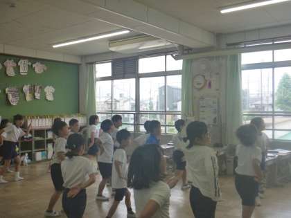 3年生 健康チャレンジ体操、めきめきと上達しています。