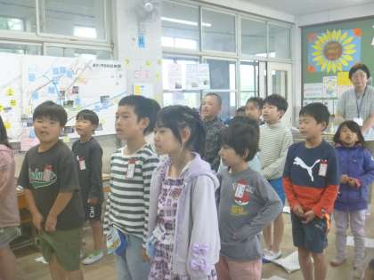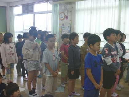 1・2組合同で、きずな集会に向けて練習をしました。大きな声でしっかりと、各クラスの学級目標を発表し合いました。