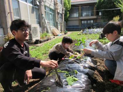 3組 さつまいもの苗を植えました
