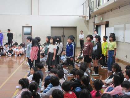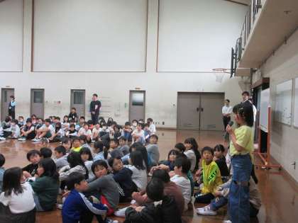 5月13日(月)のチャレンジタイムにきずな集会を体育館で行いました。各クラスの学級目標をそれぞれ伝え合いました。これからもクラスの学級目標を大切にしていければと思います。