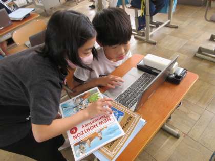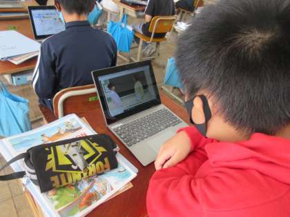 デジタル教科書の設定を行いました。自分のタブレットで自由に教科書の英語を聞くことができます。