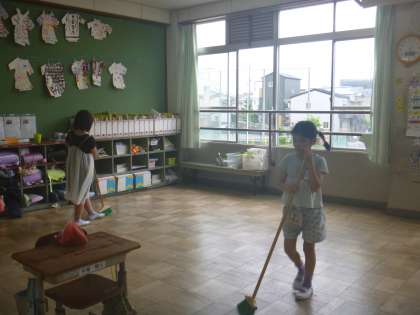 掃除も各担当のところを責任をもって取り組んでいます。みんなのためにきれいにすることは、とても気持ちがよいですね。