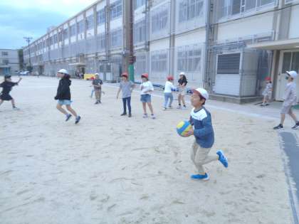 今日は、遊び係さんの呼びかけで「ドッジボール」を楽しみました。みんなとても楽しそうでした。