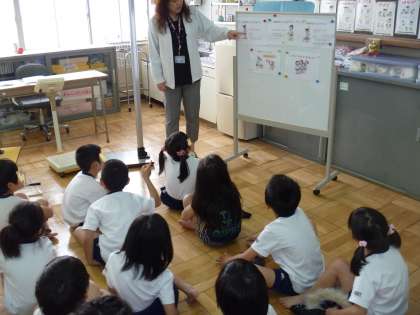 今年度一回目の発育測定です。養護の先生からお話を伺いました。これから一年間でどれくらい成長するかな?とても楽しみです。