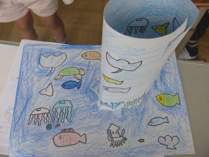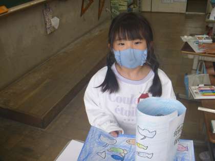 「先生できました!」と見せにきてくれました!海の生き物の世界がすてきですね!
