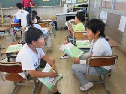 「さち子のえがお」のお話では、正しく行動するための行動について大切なことを考えました、買い物に出かけたときに、やってはいけないことを見たり、さそわれたりしたときのことを深く考えました。これからも何が正しい行動なのか深く考えていけばと思います。