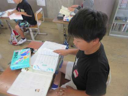 カンジーはかせと都道府県の旅では、カンジーはかせと行きたい都道府県を3つ選び発表しました。それぞれの都道府県の特徴が出たり交通手段なども出たりして楽しみました。最後は、都道府県に用いられている言葉について漢字辞典を使って調べました。