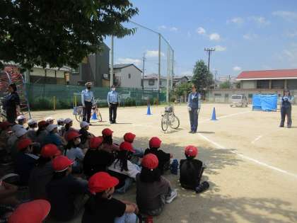 5月17日(金)に伏見警察署の方に来ていただき、自転車教室を行いました。交通ルールや気をつけることなど、たくさんのことを学ぶことができました。