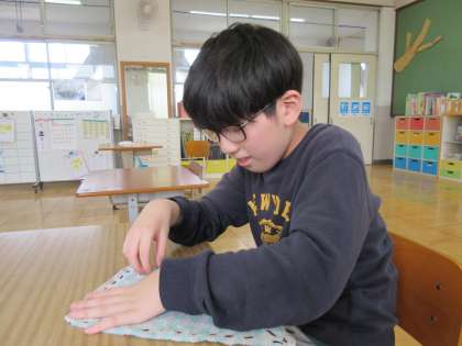 明日の掃除時間から、“マイぞうきん”で教室をピカピカにしてくださいね。