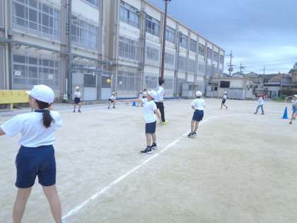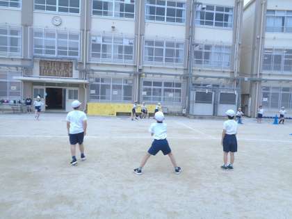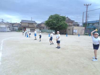 今日は、2人ペアになって5mからはじまり、30mの距離を目標に投げました。45度を意識したり、真っすぐ投げれるように足のつま先を相手の方向に意識したりして投げました。