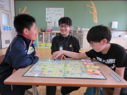 3校時に、ソーシャルスキルトレーニングのボードゲーム「なかよしチャレンジ」をしました。学校生活の中で起こりそうな、ちょっと困った場面で、自分ならどうするかを考えながら進めるゲームです。
