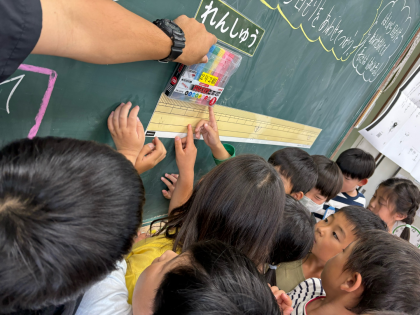 ものさしの目盛りの読み方の練習をしています!1cmよりも短い世界に、目を凝らしながら一生懸命に数えていました。長さを正しく測れるように頑張ります!