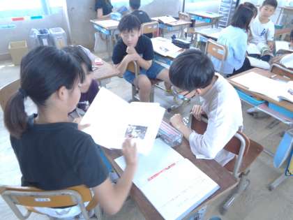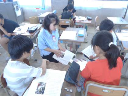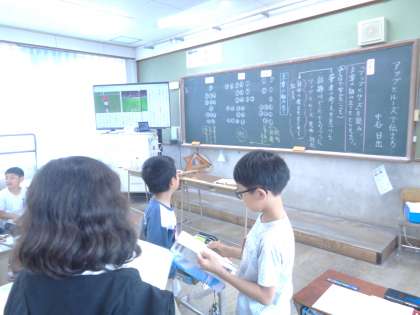 「アップとルーズで伝える」今日は、段落を確認した後、文の組立を話し合っています。たくさんの意見が出たので、それぞれ分けた根拠を話し合っています。