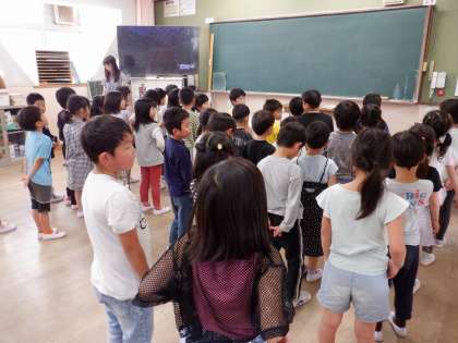 「1年生を迎える会」で、お兄さんお姉さんから入学をお祝いしてもらえるので、お礼の言葉の練習をしています。ありがとうの気持ちが伝わりますように!