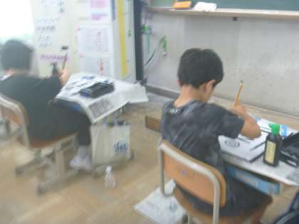筆のほをやわらかく進めながらかきました。墨を入れると、大興奮でしたね。