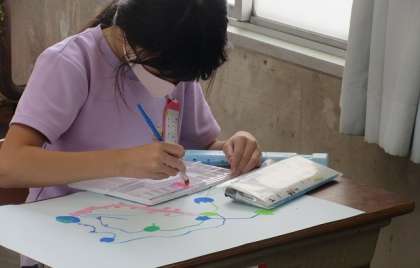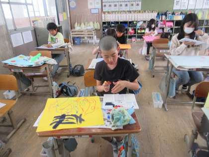 今日は、絵の具を使いました。自分がまぼろしの花を想像しながら、たくさんの色を出していると、新たな色を発見することができました。子どもたちは、楽しみながら作品を作っていました。