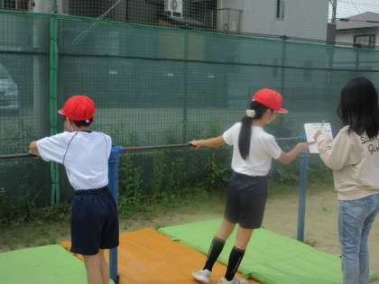 鉄棒学習では、クラスみんなで協力して素早く準備をすることができました。何度も挑戦する中で、「逆上がりができた!」ととても喜んでいる子どもたちがいました。