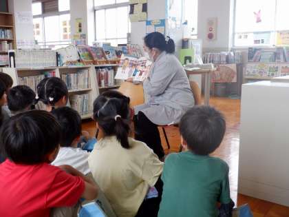 図書館で読み聞かせをしてもらいました。みんなと同じ1年生の女の子に、いっしょに帰るお友達ができる、素敵なお話でした。ぐっと集中して聞き、終わった後は「お友達ができはった…。」「いっしょに帰れてよかった…。」とお話の余韻に浸っていました。