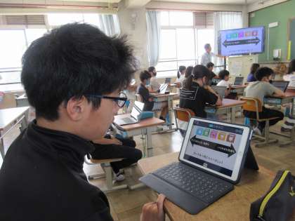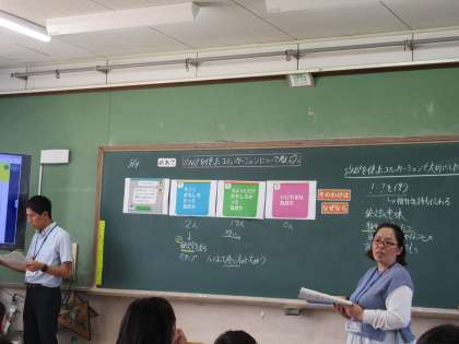 3組の5年生が、交流学級で情報モラルについての学習をしました。