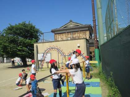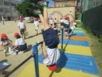 鉄棒の学習では、「はじめて逆上がりができた!」と喜んでいる子どもたちがいました。友達ができたことを自分のことのように喜んでいる子もいました。