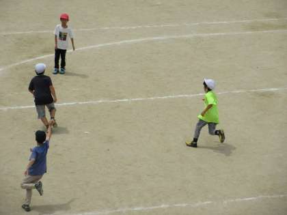 休み時間には、運動場で鬼ごっこをしたり、ドッジボールをしたりして遊んでいます。これからも運動場で元気に遊ぶことができればと思います。