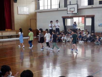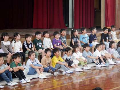 待ちに待った「1年生を迎える会」です!納所小学校のみんなから、どんなお祝いをしてもらえるのかな。楽しみで、ドキドキしていました!