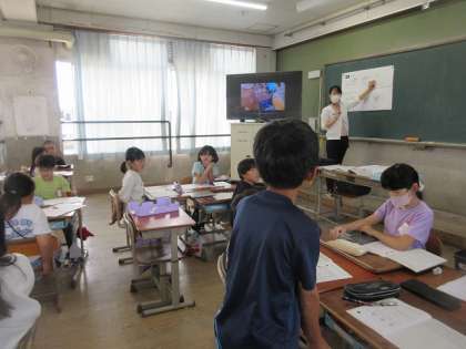土の粒の大きさと水のしみこみ方の実験をしたことについて、気がついたことを出し合いました。粒の大きさや土の種類のことが水のしみこみ方には関係していることをまとめました。