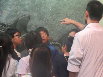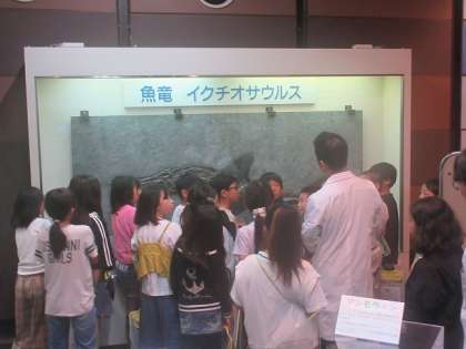 化石の展示物では、詳しく化石について教えていただいたり、実際に化石に触れたりしました。子どもたちは、真剣に聞いていました。